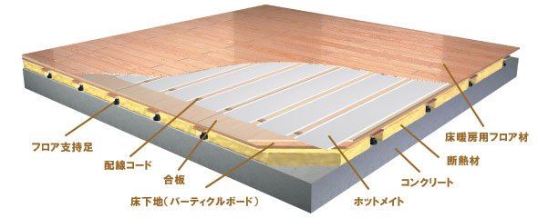 床下に敷設されている床暖房ユニットには防水処理がしてあります。 日常的な水漏れは、直ぐにふき取っていただければ問題ありません。 ただし、床上浸水などで冠水した場合は、工事店に依頼して点検を受けてください。