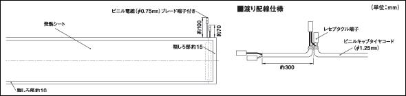 発熱シートの敷設枚数に合わせた渡り配線専用接続線が揃っています。発熱シートとは、ロック付のワンタッチコネクタで簡単・スピーディーに結線できます。