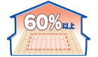 お部屋全体を温めるには床暖房の敷設面積を考慮する必要があります。 家の構造によって異なりますが、床面積の60%以上を目安に床暖房を敷設すれば、他の暖房機器を併用しなくても、お部屋全体を暖めることができます。